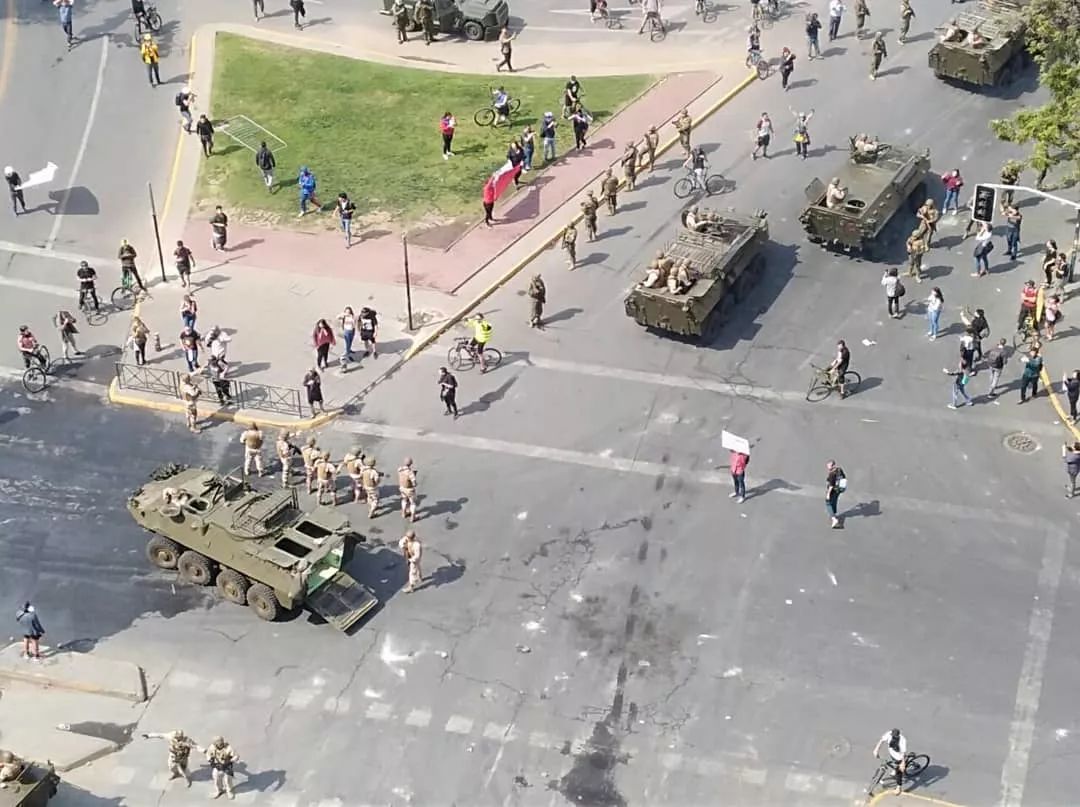 19日白天,智利军方乘装甲车在市内铺开(社交媒体 图)
